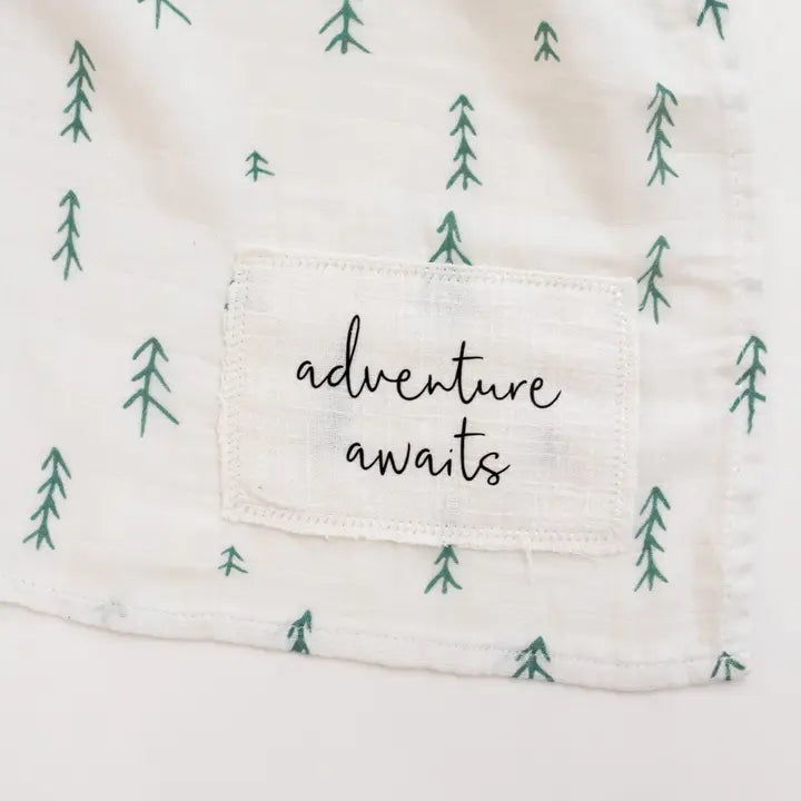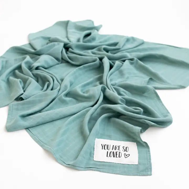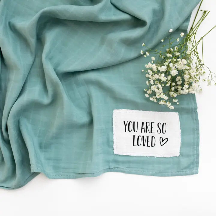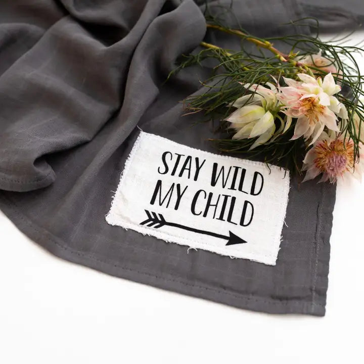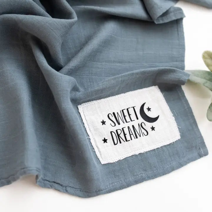 Super soft muslin swaddle blanket features a unique hand sewn patch. This giftable baby accessory measures approx. 120cm x 120cm and is perfect for swaddling or nursing.
