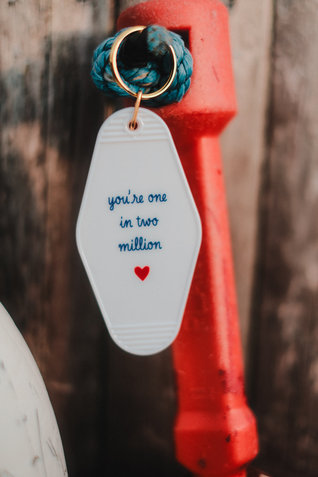 The details: retro vibes, printed with uv inks for durability and fade resistance. Keychain is 3.5" by 1.75 inches and the gold hardware adds 1.25".